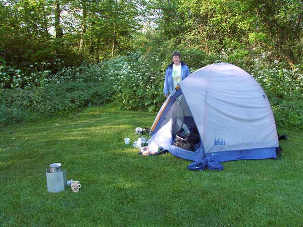 We verlaten Zeeland en rijden Woensdrecht binnen en daarmee Noord-Brabant. Ons doel is een camping tussen Nispen en Roosendaal. Eerst strijken we neer in Nispen op een terrasje. Opvallend hoeveel zwaar verkeer nog over deze dorpswegen rijdt. Camping Zonneland wordt al op de borden aangegeven en we hebben een prima plek in het bos. 's Avonds gaan we aan de picknicktafels bij de receptie zitten om te lezen. We krijgen plastic tuinstoelen aangeboden om ook bij onze tent te kunnen zitten, een leuk gebaar. Met 12 euro is het tarief weer redelijk te noemen.