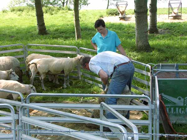 Langs de zuidrand van Zuid-Beveland naderen we het Schelde-Rijnkanaal. We stoppen voor lunch en horen vlak bij ons een machinaal geluid. De schapen blijken te worden geschoren en gepedicuurd. Ze werken niet echt mee maar een ervaren scheerder neemt ze in een soort houdgreep waardoor het scheren zonder ongelukken verloopt.