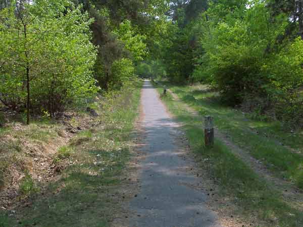 Het wordt waarschijnlijk een lange dag en we zijn wat eerder op pad dit keer. Het landschap is afwisselend met kleine plukje bos en open veld. Langs de rivier de Mark rijden we Ulvenhout binnen. Dan hebben we er zo'n 40 km op zitten, hebben koffie en doen boodschappen. Dan volgen bijna 20 km. aan smalle bospaden door de boswachterijen van Ulvenhout en Chaam. Het is zaterdag en er zijn wat meer fietsers op pad. Fietskampeerders bleken een zeldzaamheid op deze trip. We kwamen hooguit een of twee stellen per dag tegen.